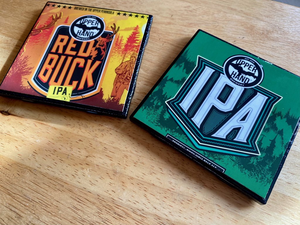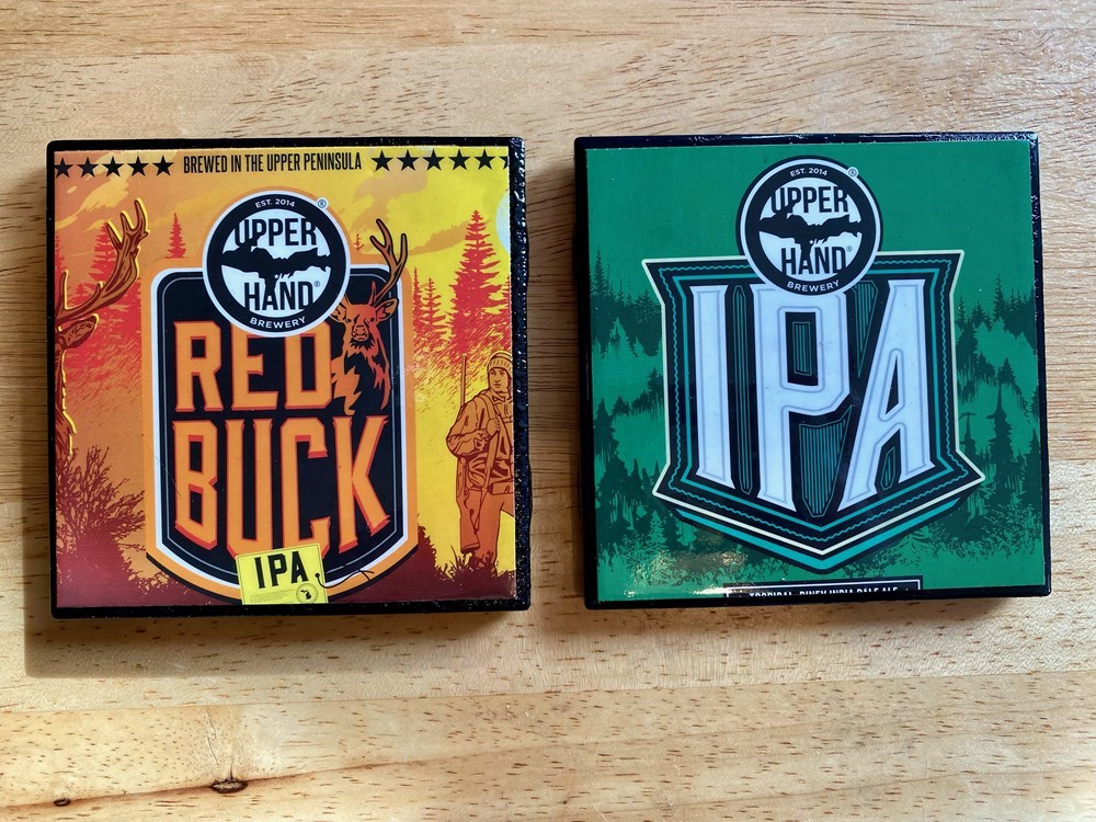 Upper Hand Brewery beer coaster pair