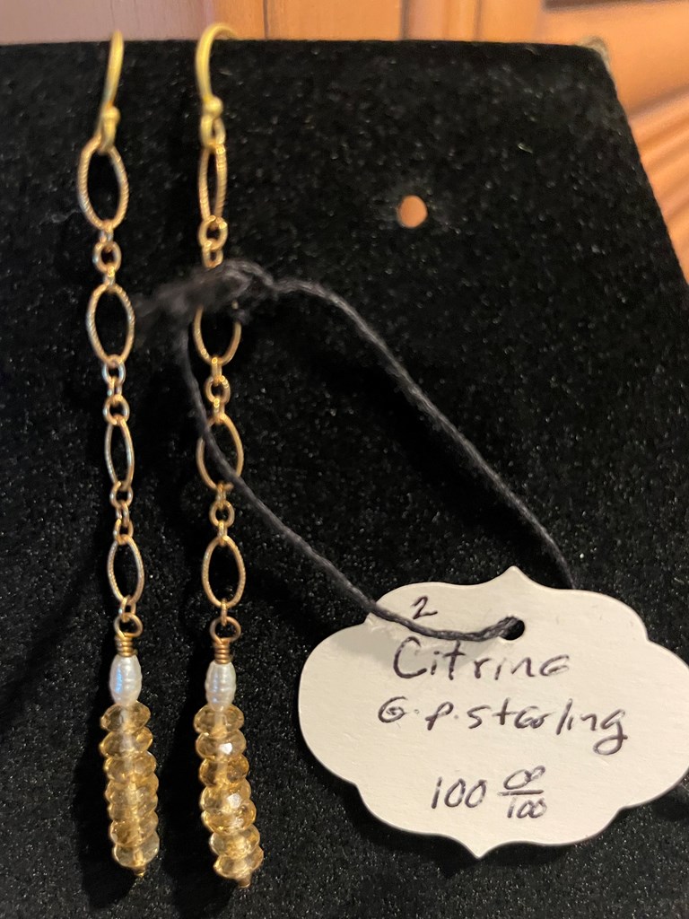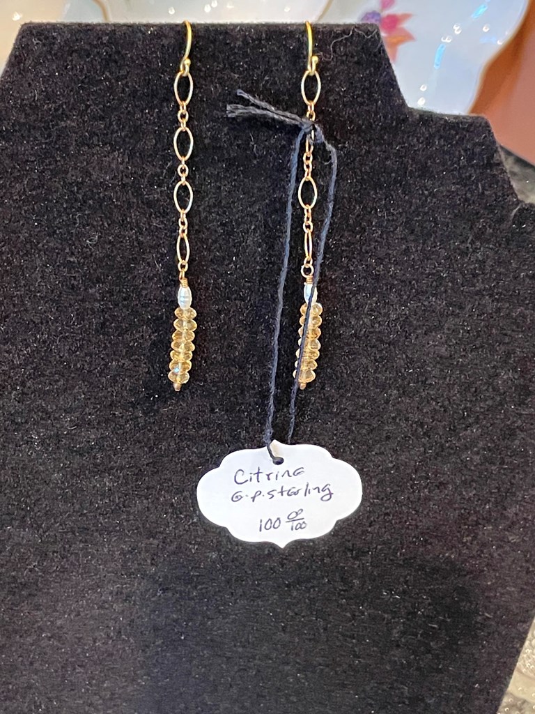 Super Sparkly Citrine and GP Sterling Long Earrings. Nealoo Earrings 2.