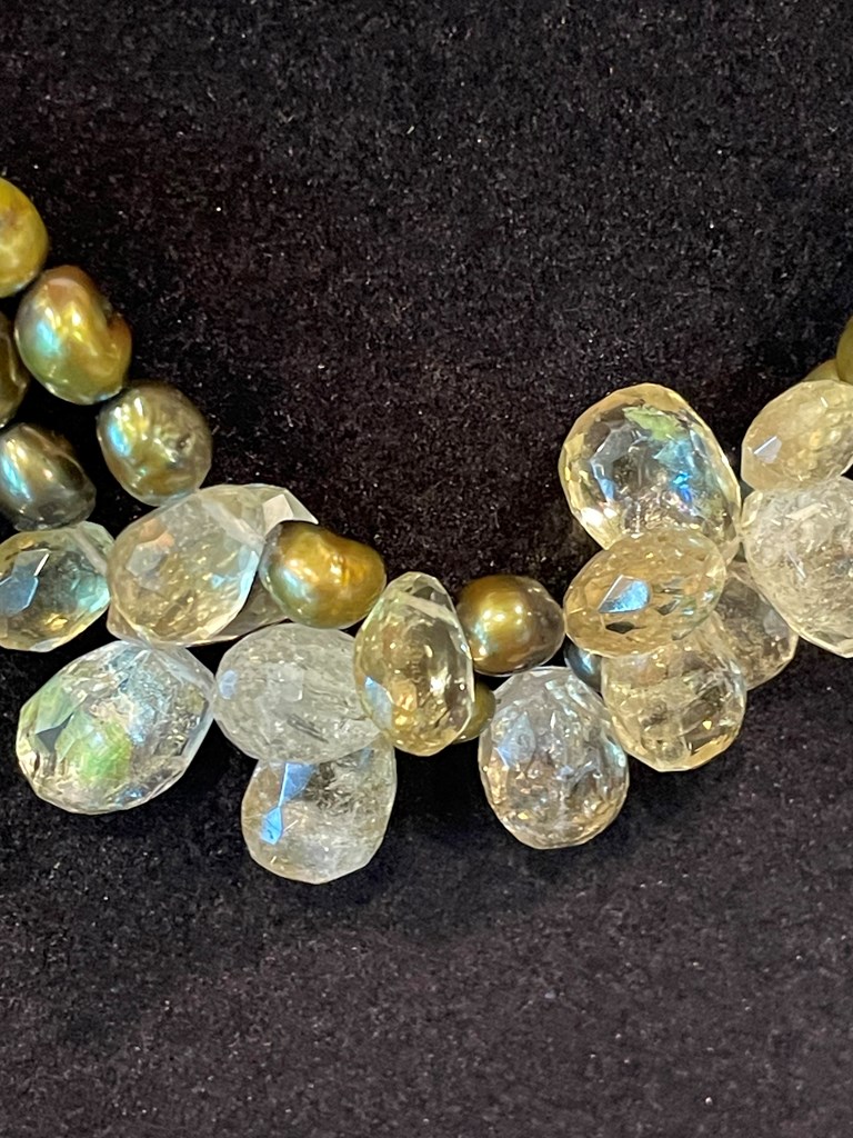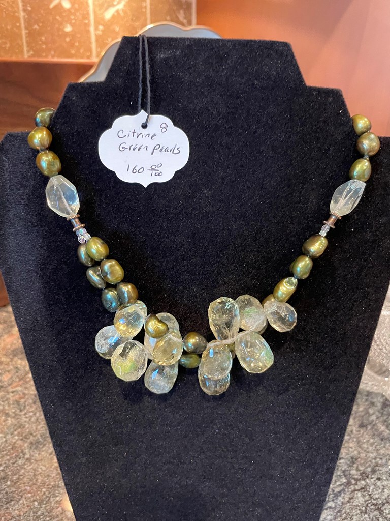 Citrine and Green Pearl Necklace. Chunky, Sparkly, Stunning Stones and Pearls. Nealoo Necklace 8.