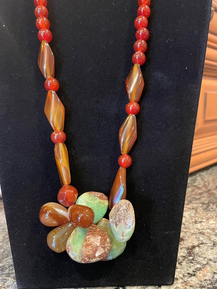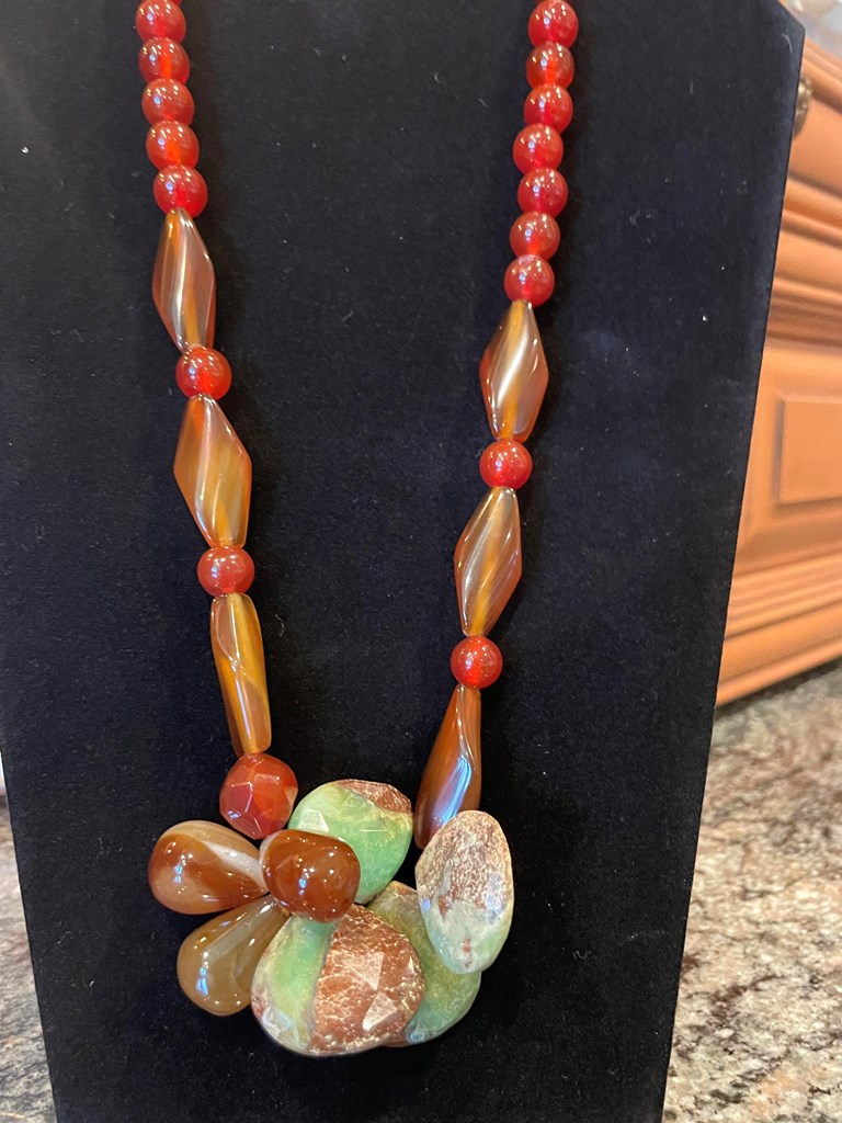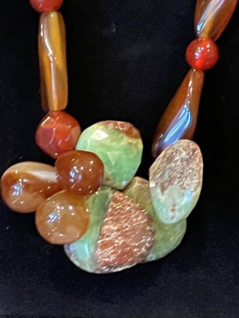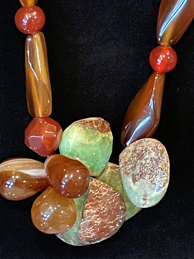 Chrisophrase, Agate, Carnelian, Sterling Necklace. Nealoo Necklace 12.