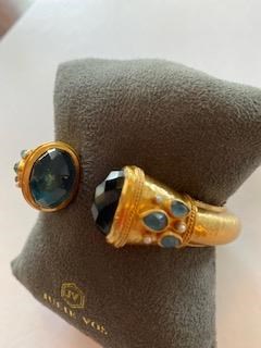 Julie Vos Cannes Cuff Iridescent Peacock Blue encrusted gemstones.