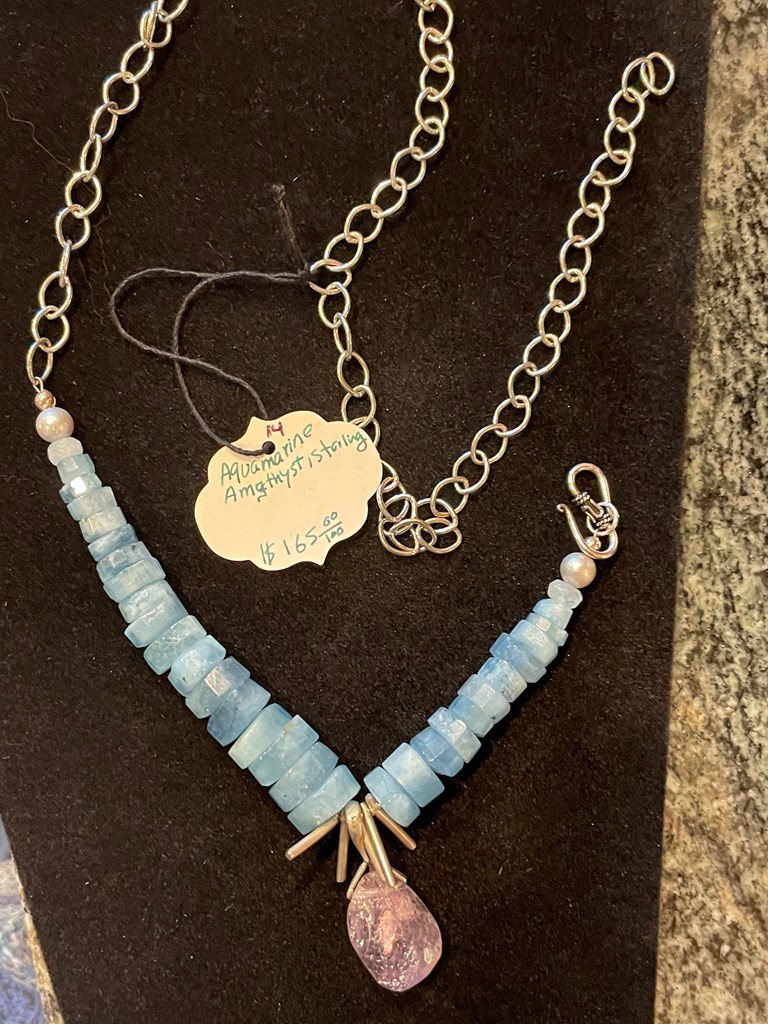 Aquamarine, Amethyst and Sterling Necklace. Adjustable Length. Nealoo Necklace 14.