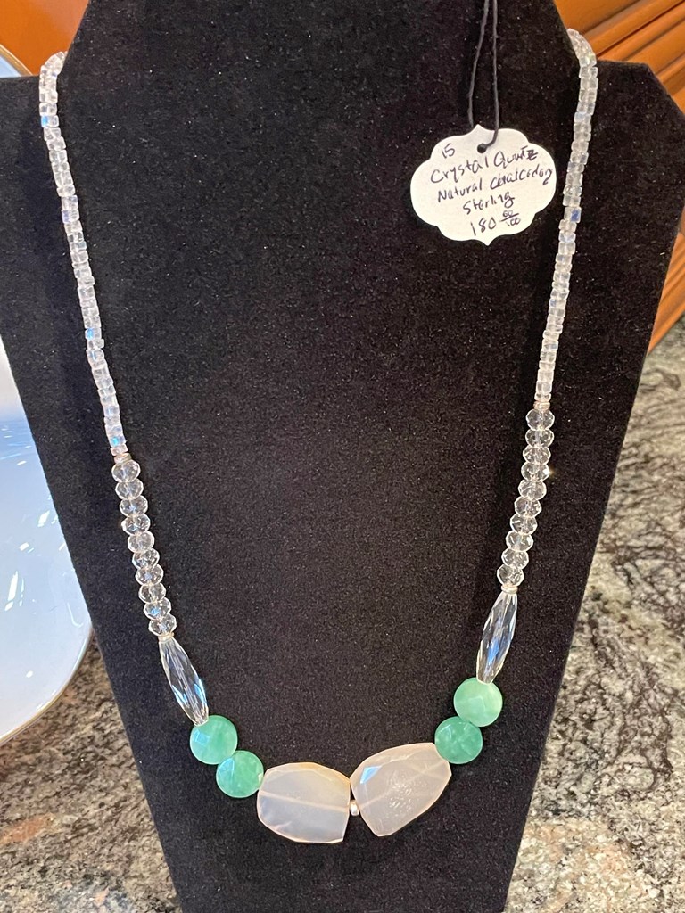 Crystal Quartz, Natural Chalcedony, Sterling Long Necklace. Nealoo Necklace 15.