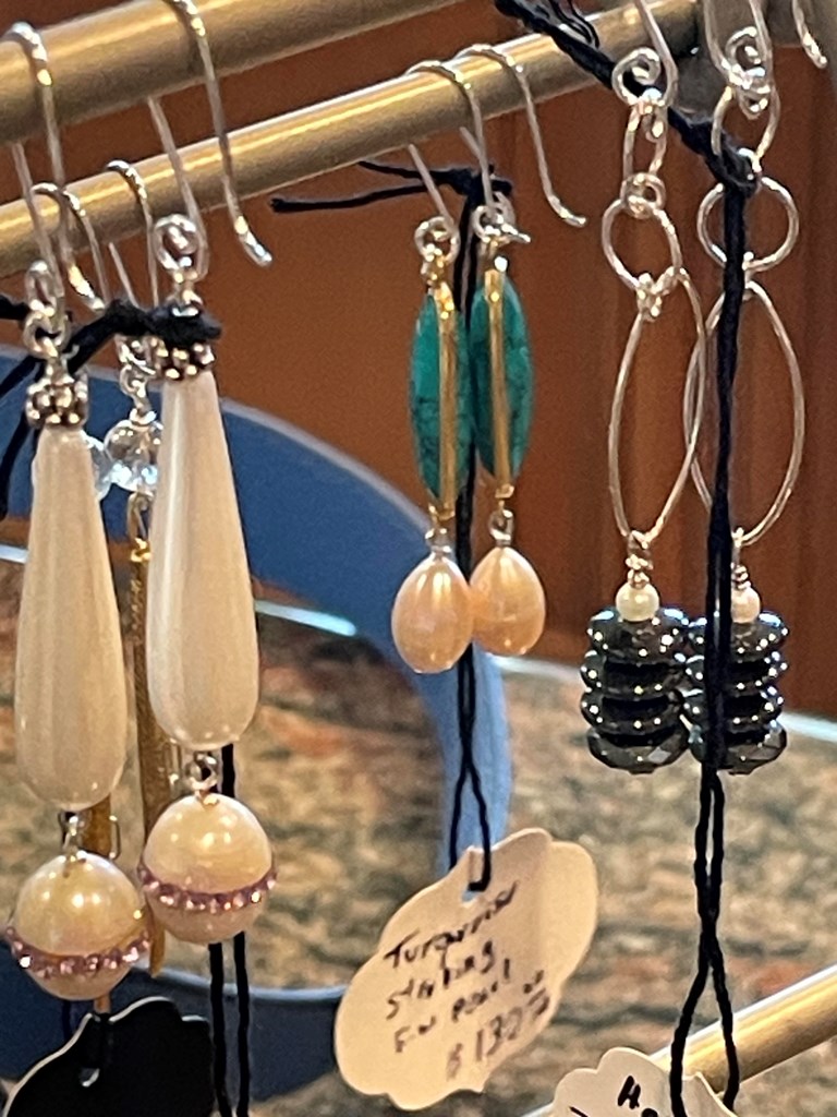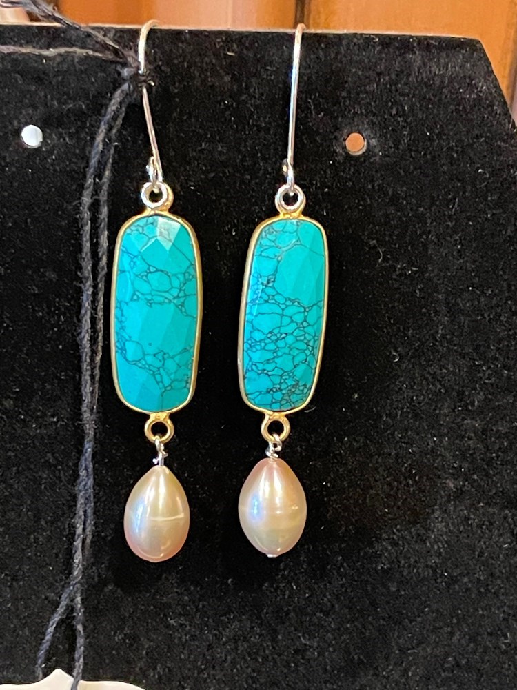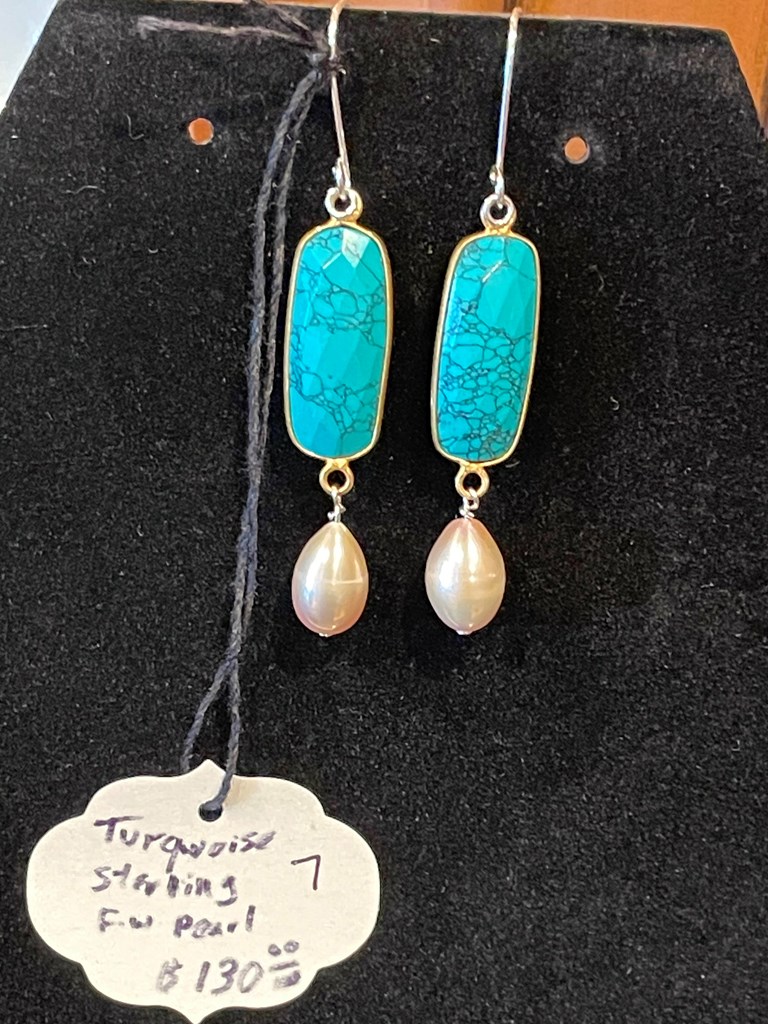 Turquoise, Sterling, Freshwater Pearl Earrings. Nealoo Earrings 7.