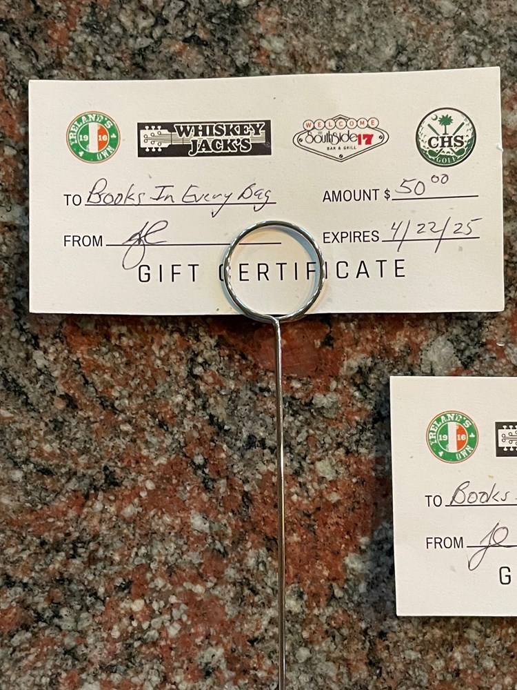 $50 Gift Card D-Fresh Hospitality: Southside 17, Ireland's Own, Whiskey Jack's, CHS GOLF. One of two gift certificates that were donated.