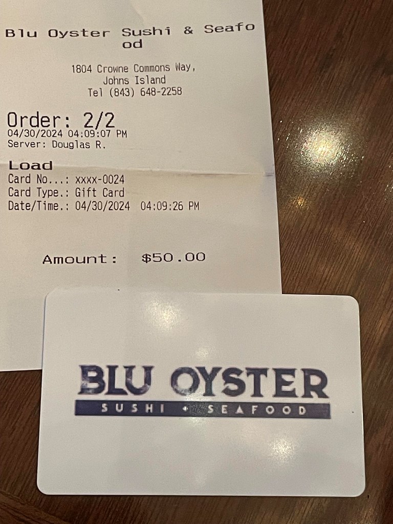 Blu Oyster Sushi and Seafood Restaurant $50 Gift Card