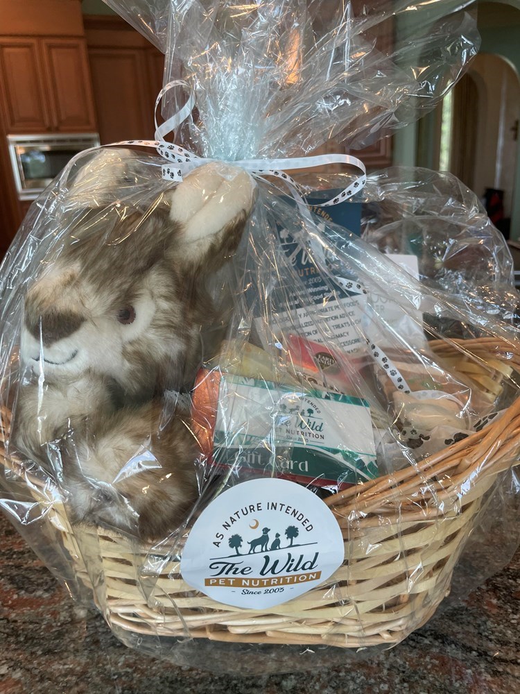 The Wild - Pet Basket w/ $10 gift card, Stuffed animal, Organic Dog Treat, No-Hide Dog Chew, P.U.P.