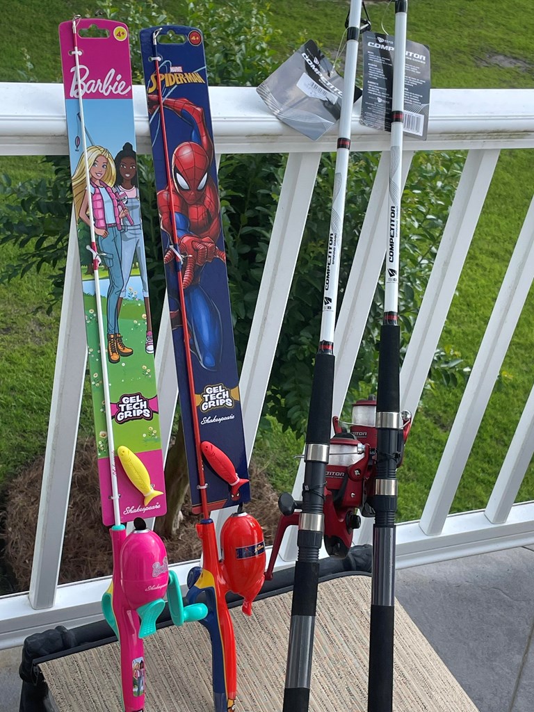FISHING! 2 -COMPETITOR Spinning Combo Rod/Reels, 2 Children's Rods (4years+) Barbie/Spiderman