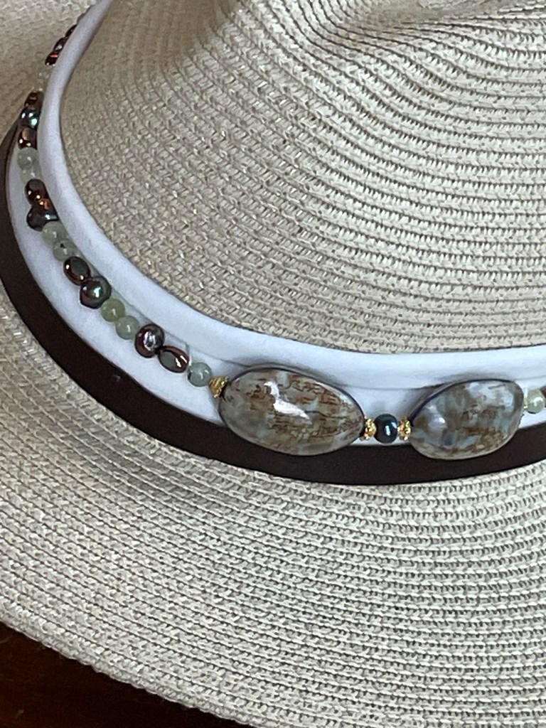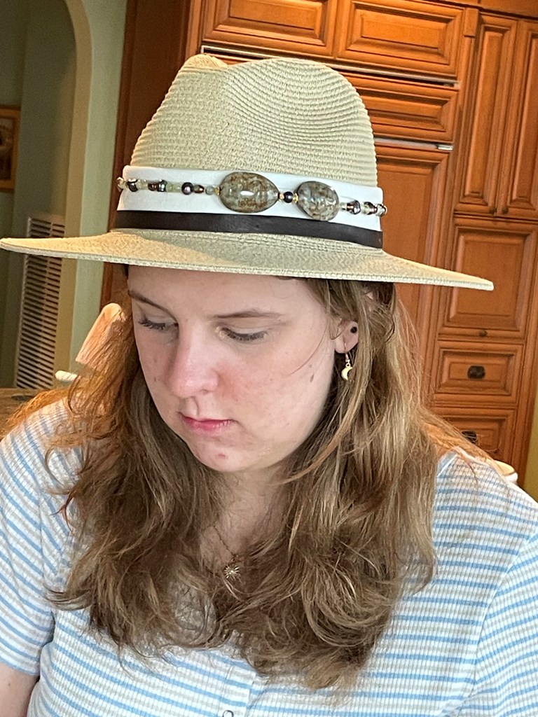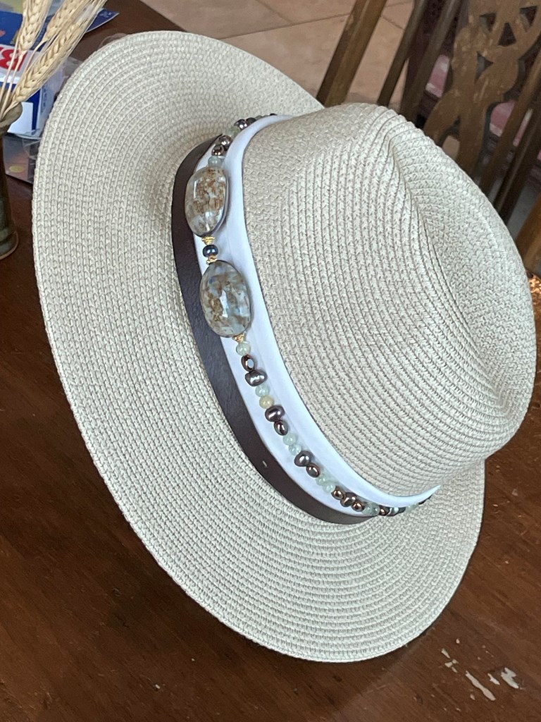 Fedora Style Straw Hat with Beaded Trim - Hat 1
