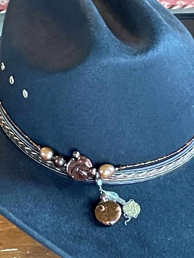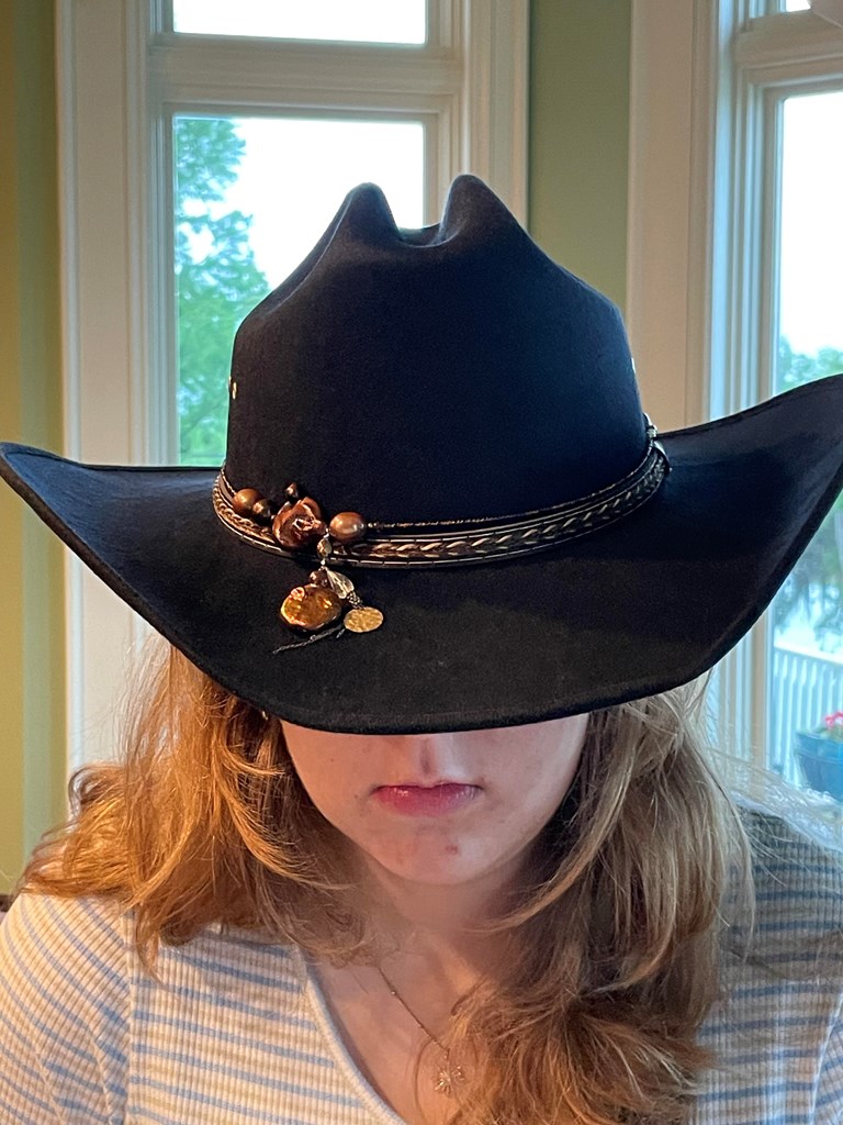 Black Felt Western Style Hat with Beaded Trim. Hat 4
